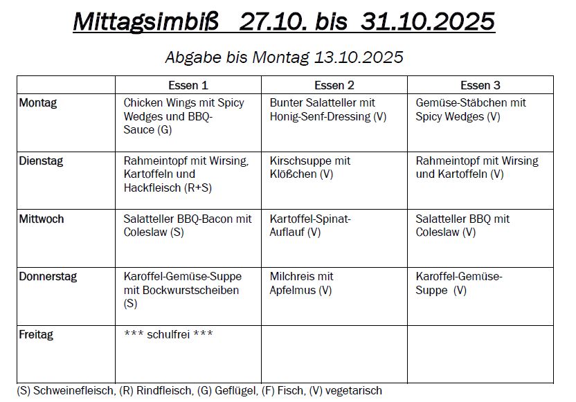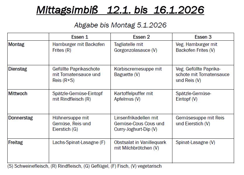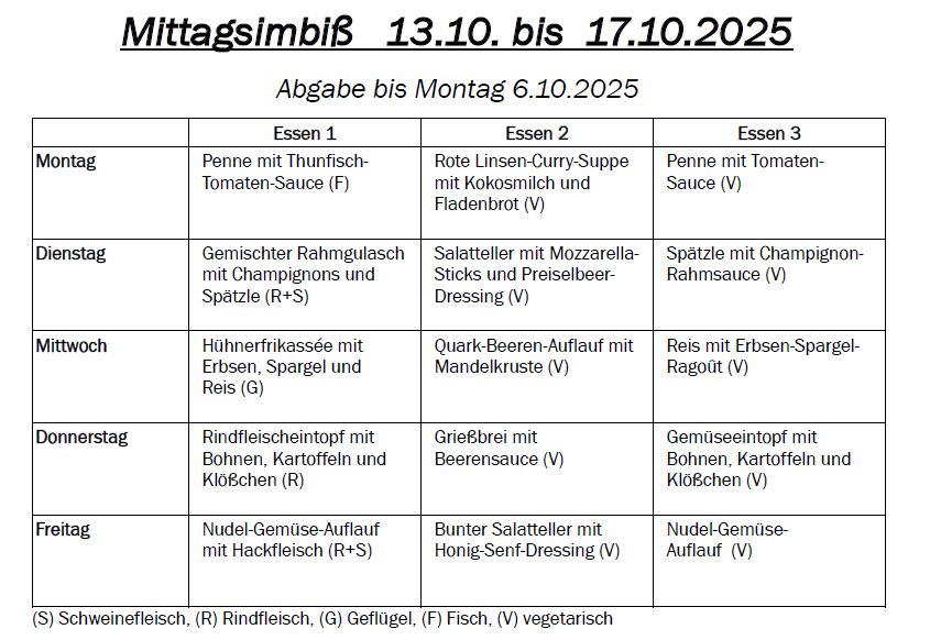 Bitte beachten Sie, dass der Betrag auch in Rechnung gestellt wird, wenn sich Ihr Kind während der Essenszeiten unerlaubt entfernt. Aus organisatorischen Gründen ist eine Einhaltung der vorgegebenen Mittagspausen notwendig. Wir danken für Ihr Verständnis.