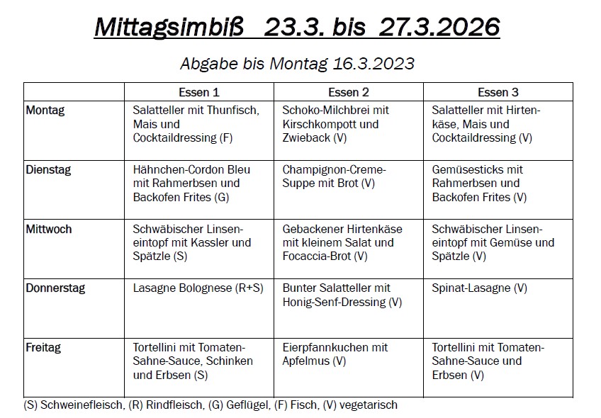 Bitte beachten Sie, dass der Betrag auch in Rechnung gestellt wird, wenn sich Ihr Kind während der Essenszeiten unerlaubt entfernt. Aus organisatorischen Gründen ist eine Einhaltung der vorgegebenen Mittagspausen notwendig. Wir danken für Ihr Verständnis.